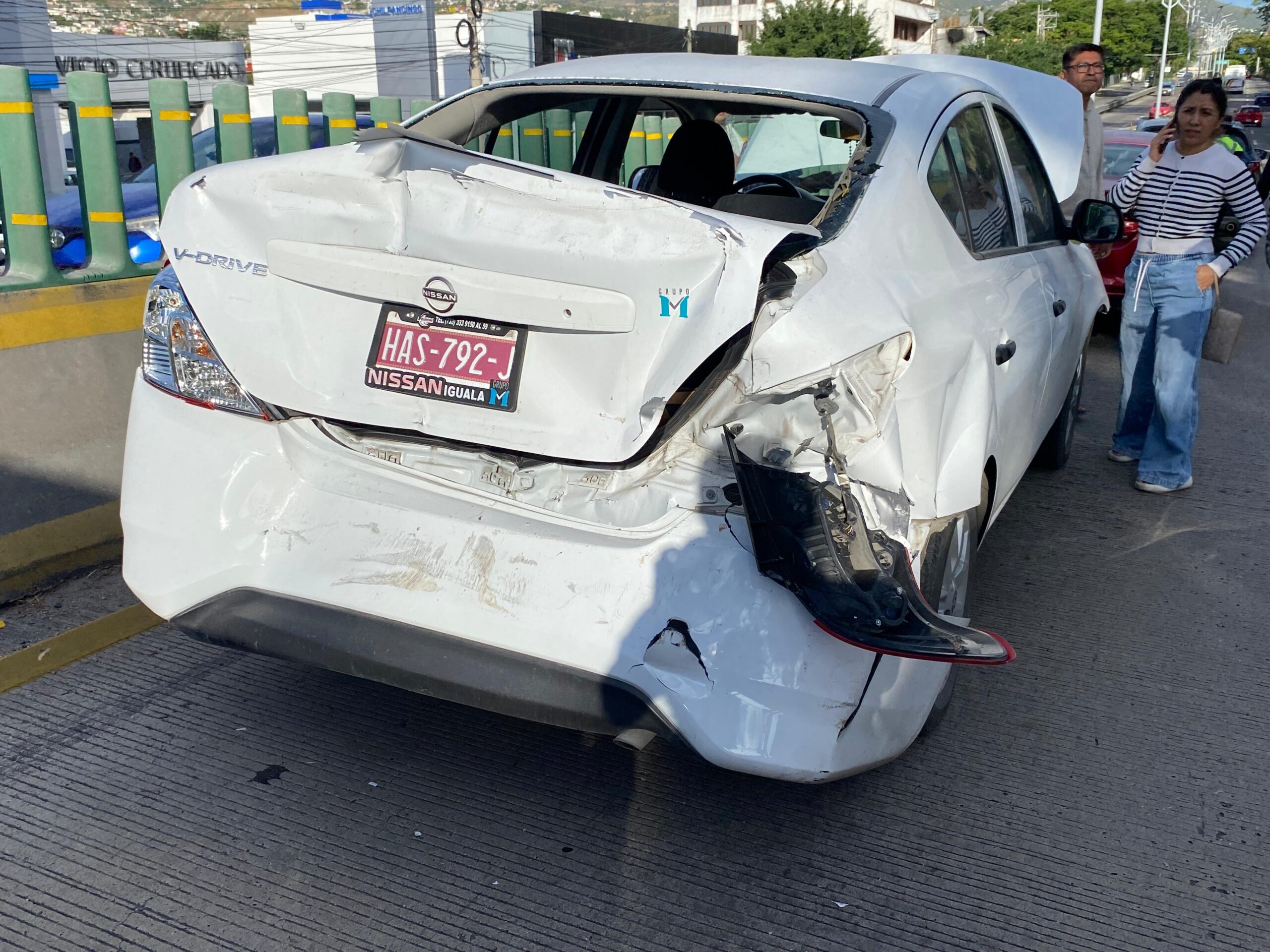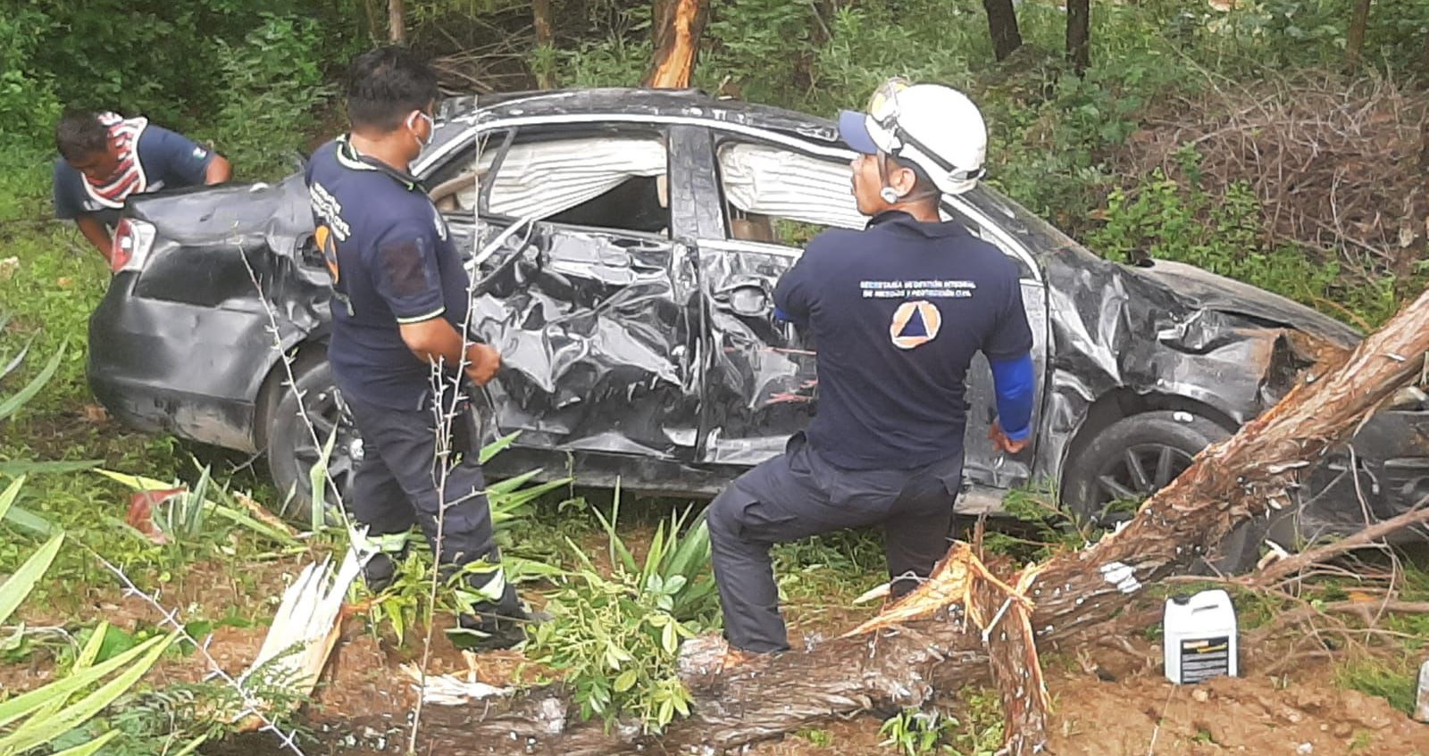 Al lugar acudieron paramédicos de Protección Civil, quienes encontraron el Derby color oro, con placas 759-SLG, completamente destrozado en la parte delantera. Dentro del vehículo se hallaban cuatro personas atrapadas entre los fierros retorcidos, una de ellas sin vida.